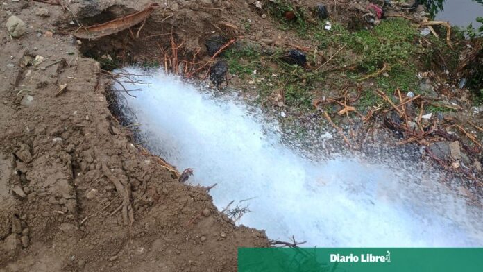 La avería ocurrió junto al puente que conecta con la comunidad de Manoguayabo, en el municipio Santo Domingo Oeste, donde una tubería de seis pulgadas fue dañada por equipos que realizaban labores de limpieza en un terreno donde presuntamente se construirá un nuevo puente.
