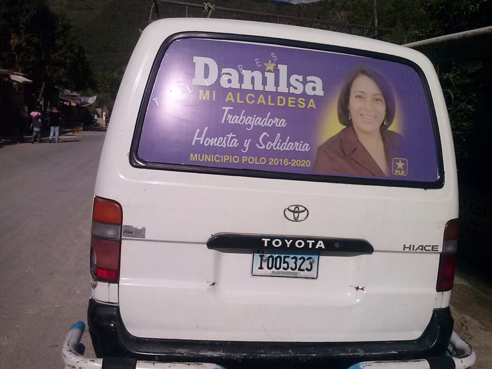 Polo, -. Mas de treinta gua guas de la Asociación de chóferes del municipio de Polo, ASOCHOPOLO, rotuladas con afiches de la pre candidata a alcaldesa licenciada Danilsa Cuevas .