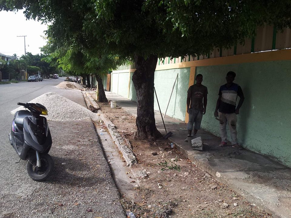 Barahona.- Ante la inoperancia que ha mostrado el ayuntamiento municipal, el colegio Divina Pastora, reconstruye las aceras y los contenes por el lado de la calle Duvergé, frente al centro escolar en esta ciudad.