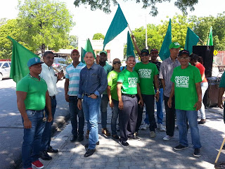 BARAHONA: Los integrantes del Movimiento Verde en esta ciudad, realizaron la mañana de este viernes un calentamiento en la plazoleta Duarte, con miras a la concentración que harán el domingo 21 de mayo en la ciudad de Azua.