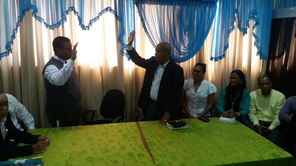 El acto de posesión fue celebrado en el salón de actos de Regional 01 y contó con la presencia de una comisión de la sede de Ministerio de educación, encabezada por Pedro Vicioso, director de gestión de juntas descentralizadas, Bélgica Santana, enlace para Regional 01y Pedro Tomas Villaman, también del área de descentralizacion.