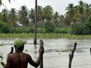 Indicaron que han perdido la cosecha de platanos, guineo, yuca, maiz y otros cultivos por el desbordamiento del rio Yaque del sur.