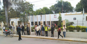 Agentes policiales y municipales fueron apostados en la entrada principal de la alcaldía, en prevención de incidentes, los que no ocurrieron ya que la protesta fue totalmente pacífica.