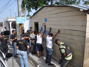 EN BARAHONA, (República Dominicana), 8 mayo, 2016. Momentos de tensión y pánico se vivió en el sector Los Cabareses de esta ciudad, tras grupos de personas agredir a pedradas y botellas a miembros de la Dirección Central de Antinarcóticos de la Policía Nacional (DICAN) que realizan un operativo antidrogas en el que ocuparon en una casa 44 porciones de un material rocoso, presumiblemente cocaína base Crack y detuvieron a varios comunitarios señalados como dueños de puestos de venta de estupefacientes.
