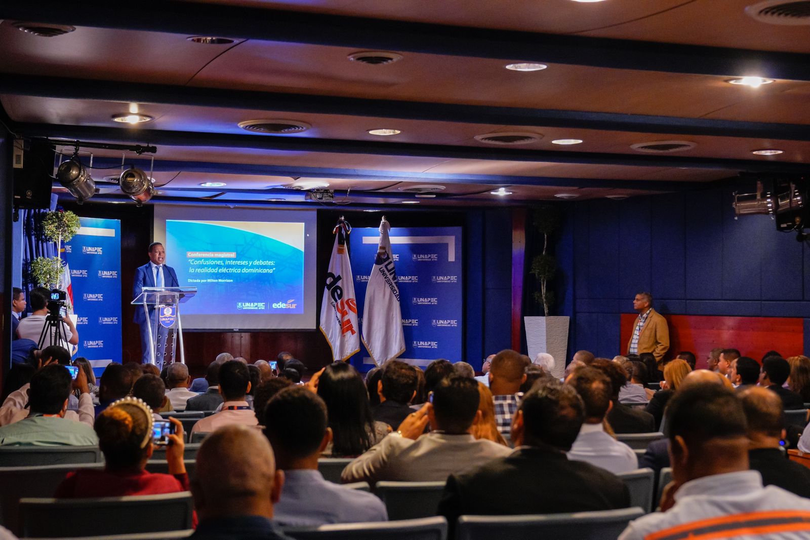 En el marco de la conferencia magistral: “Confusiones, intereses y debates: la realidad eléctrica dominicana”, dirigida a periodistas y comunicadores participantes del “2do. Diplomado del sector de eléctrico” que coordina la empresa EDESUR Dominicana, y que cuenta con el aval académico de UNAPEC, Milton Morrison resaltó el importante rol ante la sociedad que juegan los periodistas y comunicadores en la difusión de información veraz sobre el sector eléctrico dominicano, basado en la investigación y el conocimiento.