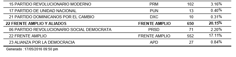 FRENTE AMPLIO Y ALIADOS FRENTE AMPLIO 20.15 %71