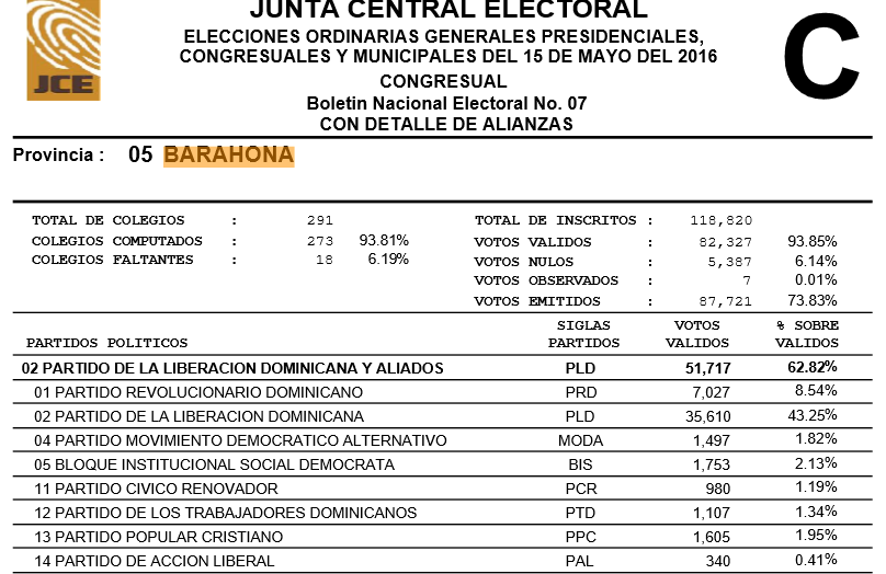 PARTIDO DE LA LIBERACION DOMINICANA Y ALIADOS PLD 74.74 %238