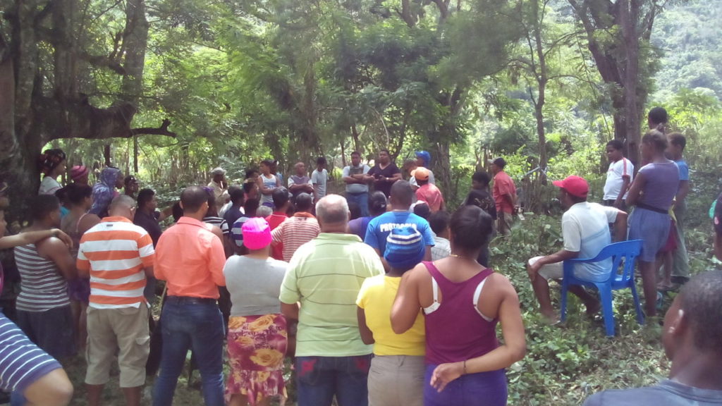 de su lado los propietarios del terreno en el dia de hoy se presentaron al lugar y de forma serena con un representante de la compañía Alba Sánchez y militares el señor Luis Martínez habló con el grupo de personas que se presentaron al lugar y en espera de que el Gobernador provincial apareciera y el síndico de la comunidad para lograr crear una comisión representará las problemáticas y explicara la situacion a los dueños de dichos terrenos .