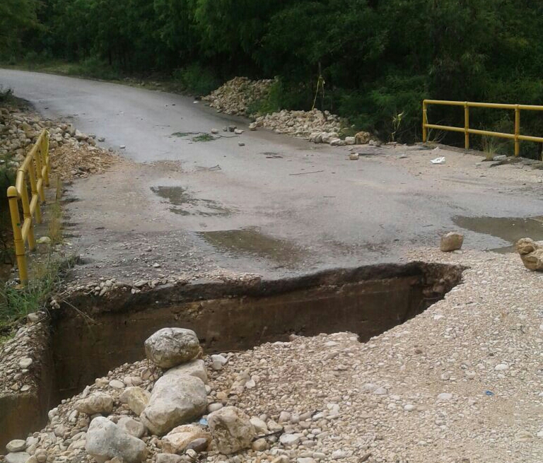 Puente que une las comunidades de Cabral y Polo, se deterioró con enorme agujero y grietas en su superficie.