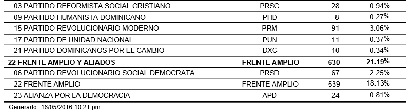 PARTIDO REVOLUCIONARIO SOCIAL DEMOCRATA PRSD 0.15 %12,33907