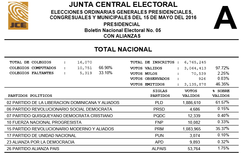02 PARTIDO DE LA LIBERACION DOMINICANA Y ALIADOS PLD 61.57 %4,68606